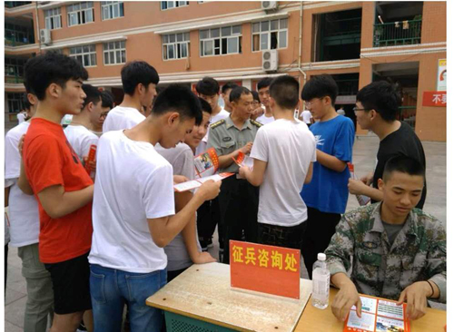 5月25日,淮陽縣征兵政策宣講團進校入班,對全縣六所高中學校開展宣講活動。效果明顯,當場有參軍意向高學歷青年報名,人數(shù)成倍增長,周口軍分區(qū)副司令員薛振喜看到這一喜人的成果后說:“大學生征兵政策宣傳進村入戶進校園入班級這個做法好?!?/p>