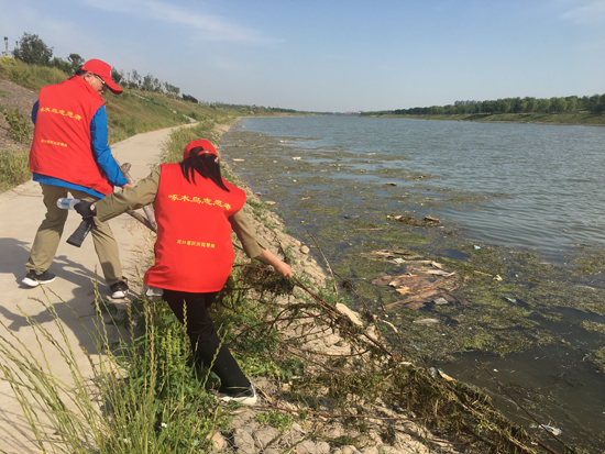 雖然當天氣溫創(chuàng)下我市入夏以來的新高,但志愿者們仍準時來到集合地點開展巡訪活動?;顒娱_始后,志愿者們來到了沙潁河風景區(qū)的鐵路風情廣場東側,發(fā)現(xiàn)這里的一處電力井蓋破損嚴重。沒過多久,志愿者們發(fā)現(xiàn)附近河段中有許多水草和漂浮物。由于河邊濕滑,又沒有清理工具,志愿者們在確保自身安全的前提下,將部分漂浮物撈到岸邊并放進了垃圾箱中。由于水草和漂浮物太多,志愿者們的努力顯得杯水車薪。