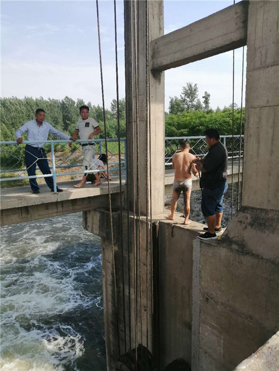 黃興龍邊大聲對青年男子說“堅持住,我去拿工具”,邊向100多米外的閘管所跑去。參加過縣水利局預(yù)防未成年人溺亡培訓(xùn)學(xué)習(xí)的所長劉浩和職工魏全心、王相等聽到喊聲,立即從辦公室拿來繩索、長竹竿等救援設(shè)備,和黃興龍一起跑向出事地點。