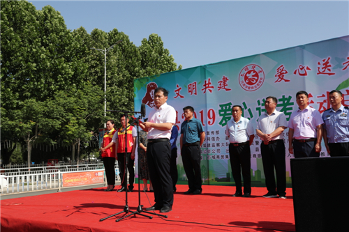 六月麥熟十里香,愛心送考又起航。6月4日上午,由太康縣委宣傳部、縣文明辦主辦,縣委網信辦、縣城管局、縣住建局、縣教體局、縣公安局、縣文廣旅局承辦的“文明共建 愛心送考”公益活動正式啟動??h委常委、宣傳部長謝成營出席活動并講話。