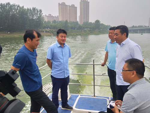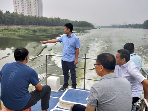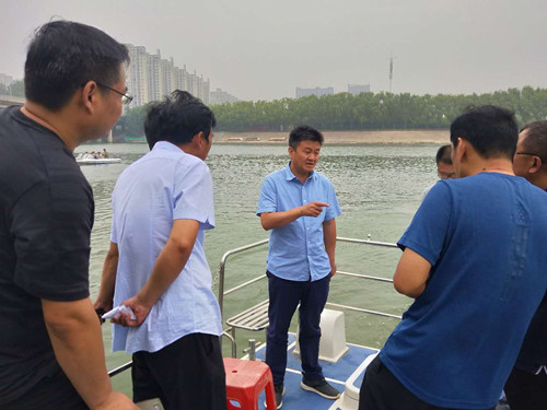 李湛一行乘船東行,通過實地查看、聽取介紹、詢問情況等方式,詳細了解河道周邊和河流沿線環(huán)境狀況。