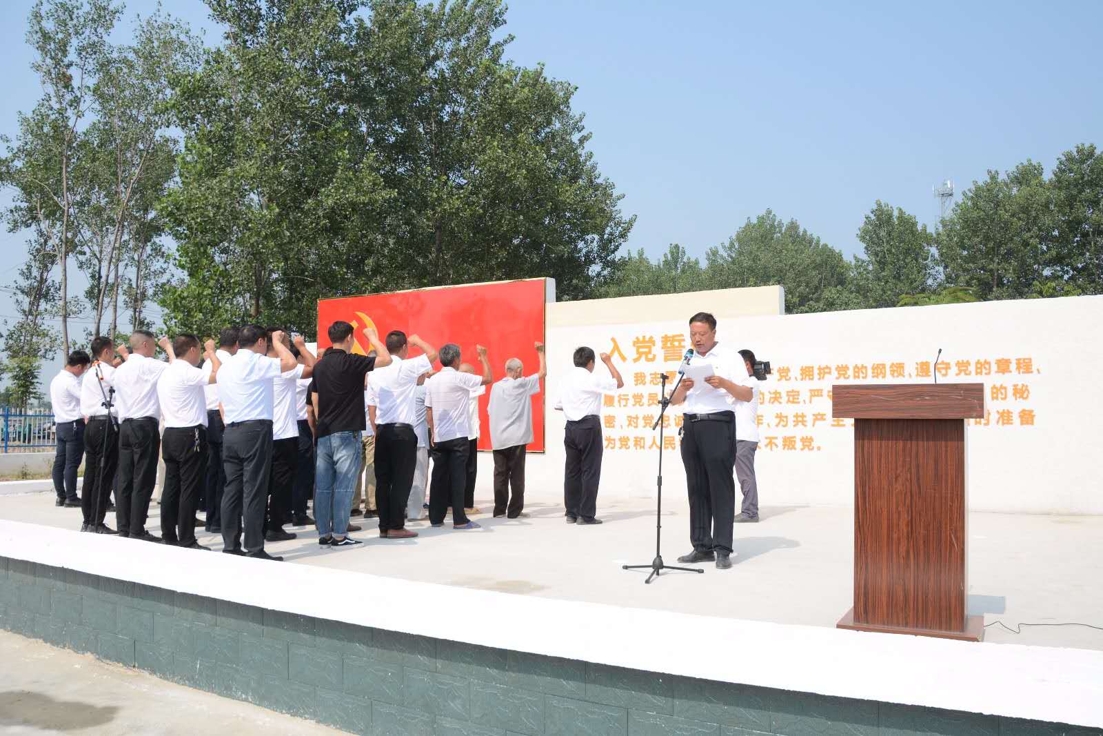 “我志愿加入中國共產(chǎn)黨,擁護(hù)黨的綱領(lǐng),遵守黨的章程……”升國旗儀式結(jié)束后,由紀(jì)莊支部書記李國喜領(lǐng)誓,全體黨員面對鮮紅黨旗,胸前佩戴黨徽,排著整齊的隊(duì)列,高高舉起右手,再次向黨作出了莊嚴(yán)地承諾,重溫入黨誓言,聲聲入耳,句句入心。