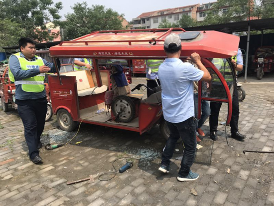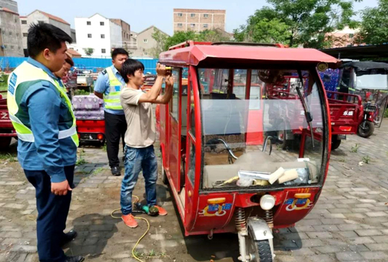 嚴(yán)管形成了高壓態(tài)勢,厚愛更維護(hù)了鄲城縣文明執(zhí)法的良好形象。該縣規(guī)定,對家用電動三輪車、電動四輪車進(jìn)入縣城禁行區(qū)域的,文明執(zhí)法,不予處罰,以暫扣警示、宣傳勸導(dǎo)為主。對于從事非法營運的電動兩輪車、電動三輪車、電動四輪車車主不予經(jīng)濟(jì)處罰,車棚自愿切割后放行。對于老弱病殘等特殊情況及時匯報領(lǐng)導(dǎo),酌情處理。