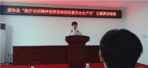 今年6月是全國第18個(gè)“安全生產(chǎn)月”,為牢固樹立安全發(fā)展理念,增強(qiáng)全民安全生產(chǎn)意識(shí)。6月28日下午,西華縣舉辦“踐行訓(xùn)詞精神擔(dān)責(zé)擔(dān)難擔(dān)險(xiǎn)暨安全生產(chǎn)月”主題演講比賽,來自應(yīng)急管理系統(tǒng)的15名選手齊聚賽場,以一個(gè)個(gè)生動(dòng)的故事和深入人心的道理,深刻闡述了“安全”的內(nèi)涵。