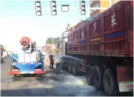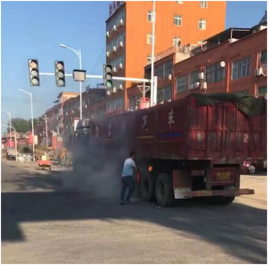 7月6日早上6時(shí)40分,一輛貨車由東至西行駛到西扶超限檢測(cè)站負(fù)責(zé)的環(huán)保檢測(cè)卡點(diǎn)時(shí)輪胎突然起火,執(zhí)法人員發(fā)現(xiàn)后,立即用車載喇叭喊話提醒司機(jī)停車,此時(shí)車輛正好停在值勤卡點(diǎn)紅綠燈處,一旦火勢(shì)不受控制,將給司機(jī)及周邊群眾帶來不可預(yù)測(cè)的危險(xiǎn)與損失,帶班站長李建東一邊組織人員進(jìn)行救火,一邊通知站長劉洪亮。得到警情后,劉洪亮站長立即組織增援,同時(shí)指令張光輝、劉伯倫駕駛站內(nèi)高壓撒水車迅速趕往事故現(xiàn)場(chǎng),經(jīng)過共同努力,著火處被撲滅,避免了一場(chǎng)火災(zāi)事故的發(fā)生。事后,貨車司機(jī)十分感動(dòng),拉著執(zhí)法人員的手深表謝意。