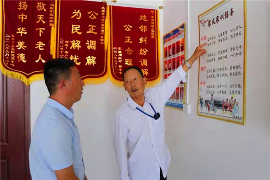 老人說,他是2018年初加入“幸福調(diào)解室”的,“當(dāng)時,我剛從外地回來,路過楊廟看到有人臨街房前懸掛調(diào)解室招牌,就報名加入了調(diào)解室隊伍。”