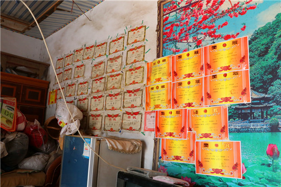 7月28日星期天,是王冬去看兩名"女兒"的時(shí)間。小姐妹家的院子不大,但被收拾得干干凈凈。屋內(nèi)擺放著一臺(tái)21英寸舊電視和一臺(tái)冰箱,但都是13年以前購(gòu)買的。屋子北墻上貼滿了獎(jiǎng)狀,十分惹眼,“倆孩子都爭(zhēng)氣,每次都拿獎(jiǎng),這些獎(jiǎng)狀都是著她們學(xué)習(xí)掙來(lái)的?!蓖踝忧绲哪棠逃檬种钢鴫ι系莫?jiǎng)狀自豪地說(shuō)。