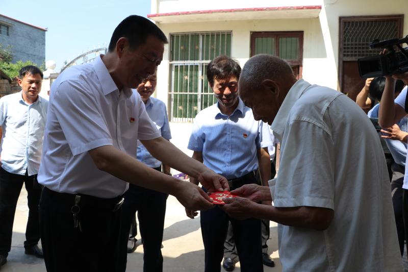 “建軍節(jié)快要到了,我代表黨委政府來看望您了,您是人民的功臣,感謝您為國家做出了很大的貢獻。”在鄧樓村鄧遠標家,閆立超關切地詢問他身體健康狀況和家庭、生活情況,感謝他為國家做出的貢獻,并為他送上慰問金和慰問品。據(jù)了解,鄧遠標是位老復原軍人,現(xiàn)年96歲,先后參加了抗日戰(zhàn)爭、解放戰(zhàn)爭、抗美援朝等戰(zhàn)爭,曾多次受獎。