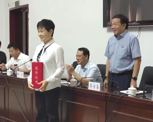會(huì)上,與會(huì)領(lǐng)導(dǎo)向韓平女士頒發(fā)榮譽(yù)證書和榮譽(yù)獎(jiǎng)牌。受助學(xué)生代表作了發(fā)言。