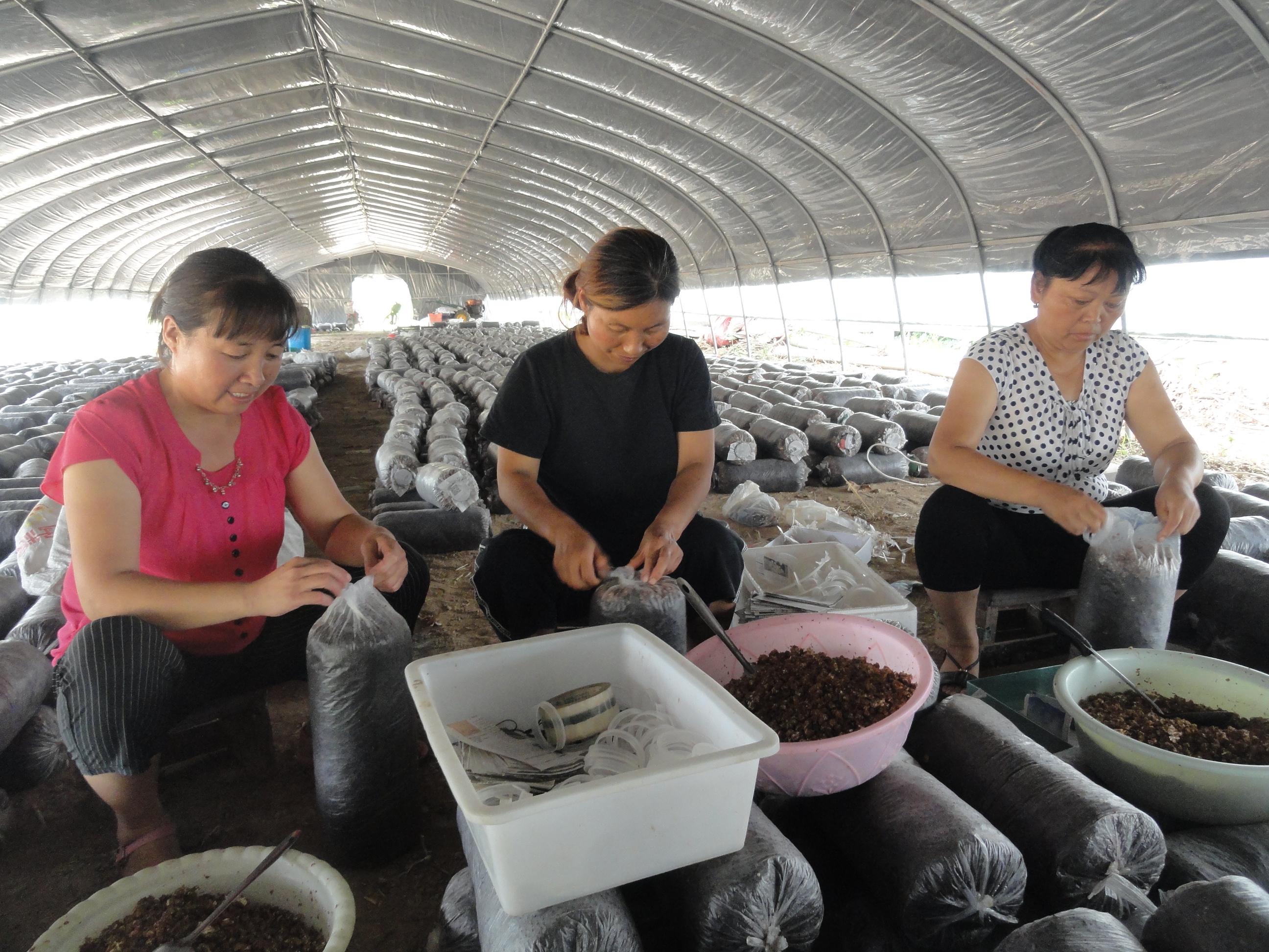 黃寨鎮(zhèn)的楊秀麗在鎮(zhèn)黨委、鎮(zhèn)政府的支持下,先后投資120多萬元,在楊營村創(chuàng)建了榮達食用菌合作社,實行統一育種、統一管理、統一技術,直接帶動20多戶群眾實現增收。圖為昨日,楊秀麗和合作社人員一起裝封菌種。