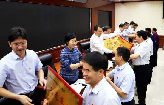 8月28日上午,鄲城縣綜合考評(píng)工作總結(jié)表彰會(huì)議召開(kāi),通報(bào)2018年度全縣綜合考評(píng)工作和今年上半年經(jīng)濟(jì)運(yùn)行情況,安排部署下半年重點(diǎn)工作,并對(duì)2018年度評(píng)選出的先進(jìn)單位進(jìn)行表彰,進(jìn)一步凝神聚力,搶抓機(jī)遇,務(wù)實(shí)重干,加快發(fā)展,確保完成全年各項(xiàng)目標(biāo)任務(wù)??h委書(shū)記羅文閣、縣長(zhǎng)李全林出席會(huì)議并講話,縣委副書(shū)記、政法委書(shū)記崔衛(wèi)國(guó)主持會(huì)議,縣領(lǐng)導(dǎo)李建軍、王偉、吳青鋒、王智華、馬超、胡友濤、劉輝、金仁旺、薛燕、謝超等縣副處級(jí)以上領(lǐng)導(dǎo)干部,各鄉(xiāng)鎮(zhèn)(辦事處、高新區(qū))黨(工)委書(shū)記、鄉(xiāng)鎮(zhèn)長(zhǎng)(主任),縣直各單位主要負(fù)責(zé)同志,縣委各部委(辦)常務(wù)副職等參加會(huì)議。