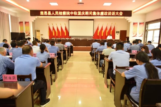 中秋節(jié)、國(guó)慶節(jié)即將來(lái)臨,為加強(qiáng)節(jié)日期間黨風(fēng)廉政建設(shè),以實(shí)際行動(dòng)展現(xiàn)檢察隊(duì)伍遵規(guī)守紀(jì)的過(guò)硬作風(fēng),9月 9日,鹿邑縣人民檢察院召開中秋、國(guó)慶“雙節(jié)”期間集體廉政談話大會(huì)。