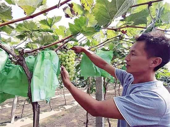 在楊樓村,轉業(yè)返鄉(xiāng)的李玉柱在土地上也做出了大文章。李玉柱在部隊服役15年,本可按政策安排工作。但是,他有著強烈的創(chuàng)業(yè)熱情。三年前,在鄉(xiāng)村兩級組織的支持下,他租用村集體土地,投入100多萬元搞葡萄種植。目前,葡萄進入豐產期,李玉柱每年都可實現(xiàn)收入20多萬元。