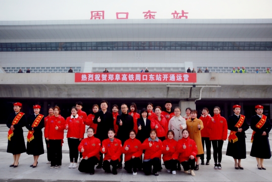 為慶祝鄭阜高鐵首發(fā),同時給乘客營造一個溫馨舒適的乘車環(huán)境,提升城市溫度,12月1日,在團市委的組織下,來自周口職業(yè)技術學院的80名青年志愿者聚集在周口東站,開展志愿服務活動。記者在現場看到,志愿者身穿統(tǒng)一服裝,分布在站前廣場、售票廳、進站口、候車廳的各個角落,他們有的幫助乘客取票;有的引導乘客,幫助乘客進站;有的則幫助車站工作人員分散客流量等。志愿者們積極熱情的工作態(tài)度,得到了廣大乘客的好評。