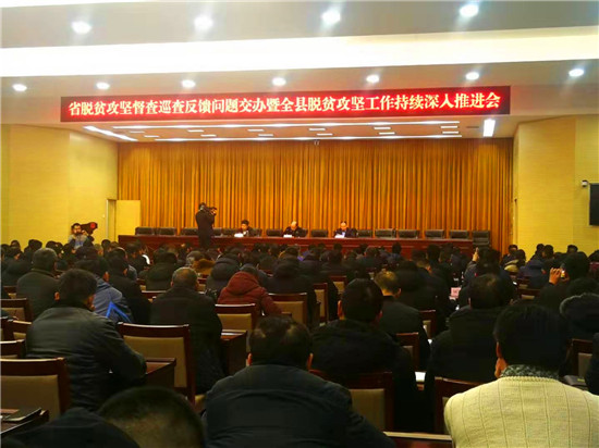 會上,趙紅亮傳達(dá)了《省脫貧攻堅(jiān)第九督查巡查組對我縣調(diào)研指導(dǎo)反饋問題清單》。段然對近期全縣脫貧攻堅(jiān)工作進(jìn)行具體安排部署。