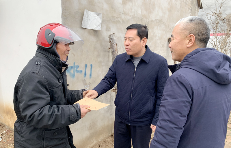 在牛莊和梁莊行政村,趙紅建在寧平鎮(zhèn)鎮(zhèn)長(zhǎng)王樹(shù)勤的陪同下,看望慰問(wèn)了困難群眾、困難老黨員,送去了慰問(wèn)金,向他們致以新春的問(wèn)候和美好的祝福。
