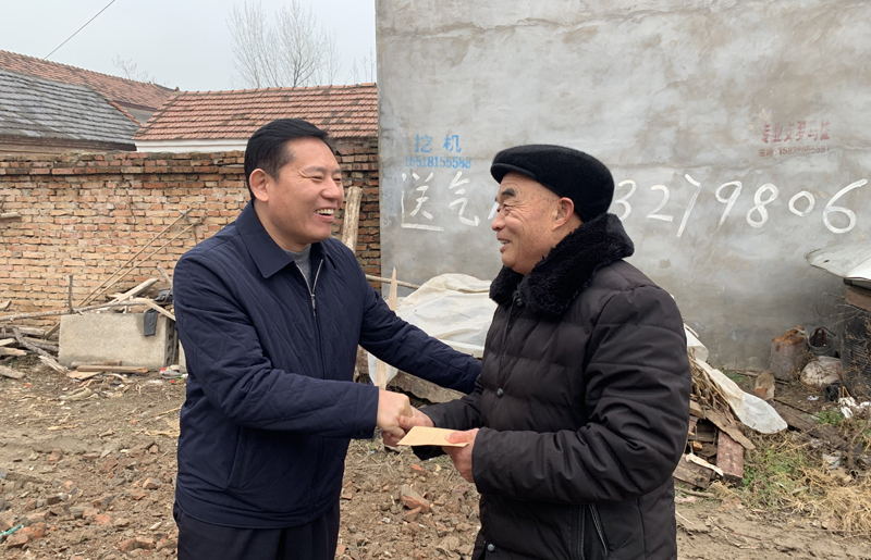 在王寨、竹園行政村,陳鳳祥看望慰問(wèn)了部分貧困群眾、老黨員、烈屬家庭,了解他們的近況,并送去了慰問(wèn)金和慰問(wèn)品,提前祝福他們過(guò)一個(gè)歡樂(lè)、祥和的春節(jié)。每到一戶,陳鳳祥都仔細(xì)了解困難群眾和老黨員的身體情況、生活狀況、年貨置辦情況,囑咐他們一定要保重身體。