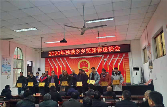 懇談會(huì)由鄉(xiāng)黨委書記高毓明主持,首先,鄉(xiāng)長劉衛(wèi)亞向參會(huì)人員介紹了獨(dú)塘鄉(xiāng)過去一年的發(fā)展、變化和取得成績。其次,為8位“最美鄉(xiāng)賢”和10位“最美創(chuàng)業(yè)之星”舉行了頒發(fā)獎(jiǎng)牌、證書儀式,“最美鄉(xiāng)賢”和“最美創(chuàng)業(yè)之星”代表作了典型發(fā)言。會(huì)上,各位鄉(xiāng)賢各抒己見、暢所欲言,為獨(dú)塘鄉(xiāng)未來發(fā)展提出了很多寶貴的意見和建議,一致表示一定會(huì)積極發(fā)揮自身作用,助力獨(dú)塘鄉(xiāng)經(jīng)濟(jì)社會(huì)各項(xiàng)事業(yè)穩(wěn)步發(fā)展。