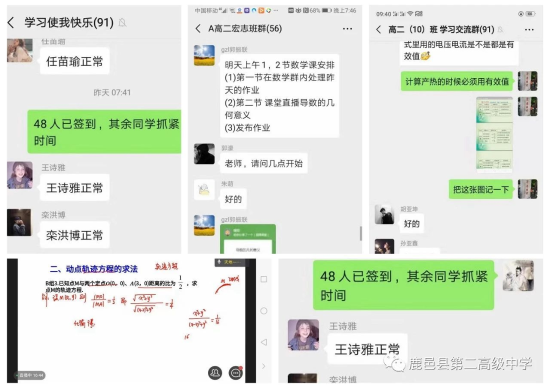 縣第二高級(jí)中學(xué)高三畢業(yè)班的班主任趙曉莉老師說(shuō):“疫情阻擋不了我對(duì)學(xué)生的關(guān)懷,疫情阻擋不了我對(duì)職責(zé)的擔(dān)當(dāng)!這就是我們二高人的精神和情懷!”新冠肺炎發(fā)生以來(lái),學(xué)校以班級(jí)為單位組建網(wǎng)絡(luò)課堂,讓學(xué)生加入進(jìn)來(lái),在線上直播課堂,學(xué)生聽(tīng)課,線下布置作業(yè),學(xué)生按時(shí)打卡完成,實(shí)現(xiàn)停課不停學(xué),教師和學(xué)生“在家上課”!