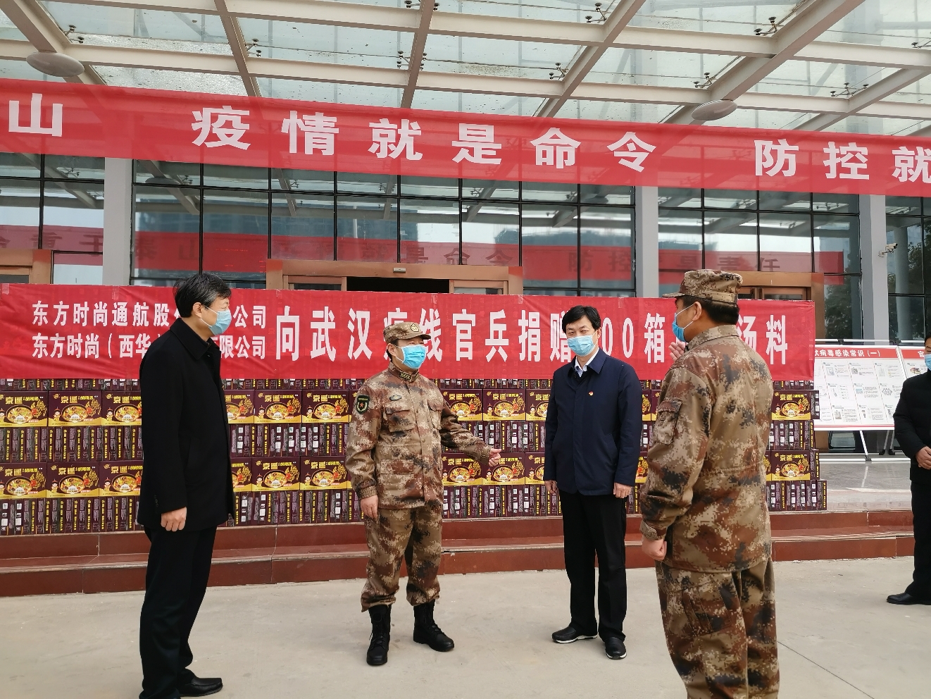 在西華縣人武部院內(nèi),東方時(shí)尚通航股份有限公司向武漢疫線官兵捐獻(xiàn)500件胡辣湯料,表達(dá)了企業(yè)對人民子弟兵的深情厚誼。王善沖代表部隊(duì)對企業(yè)慰問表示感謝。隨后,王善沖一行人又來到該縣大富城小區(qū),對堅(jiān)守一線的工作人員表示慰問,鼓勵他們在疫情防控的關(guān)鍵時(shí)刻要繼續(xù)堅(jiān)持、不能有放松麻痹思想。
