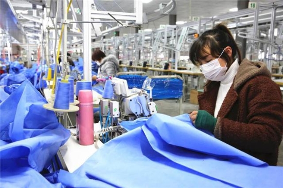 “進(jìn)廠員工每天都要佩戴口罩,車間里一天三次消毒,身體不適要及時(shí)向村委會(huì)匯報(bào)……”2月22日,安靜了多日的項(xiàng)城市三店鎮(zhèn)黃莊行政村“扶貧車間”里又熱鬧了起來(lái),30多名附近村的村民熟練地操作著縫紉機(jī),隨著清脆的機(jī)杼聲,一捆捆丙綸布匹滑下生產(chǎn)線。