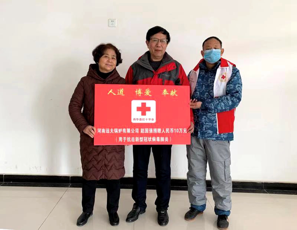 手術(shù)后在鄭州休養(yǎng)的河南遠(yuǎn)大鍋爐黨支部書記趙國強(qiáng),在看到廣大醫(yī)護(hù)人員、共產(chǎn)黨員紛紛申請到抗疫一線時(shí),他躺不下了,不顧身體病痛,于1月31日和家屬專程趕回西華,向西華縣紅十字會(huì)捐款10萬元,用于抗擊新型冠狀病毒感染的肺炎疫情防控工作。