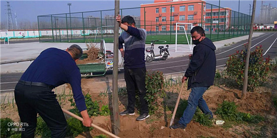 陽春三月,春風(fēng)吹綠了枝芽,吹綠了草地,櫻桃花、梨花爭(zhēng)相開放。植樹節(jié)前夕,西華縣蔣莊小學(xué)組織老師一邊戰(zhàn)疫情,一邊開展植樹造林活動(dòng),堅(jiān)持在疫情中為校園再添新綠。