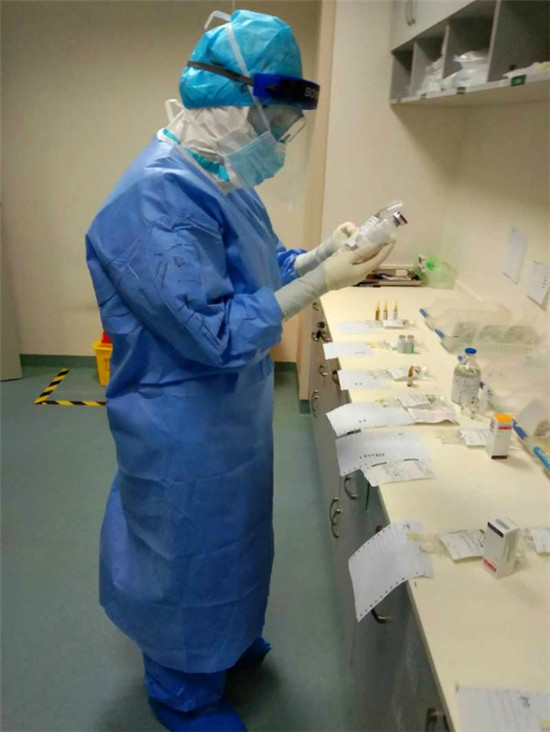 周口市中心醫(yī)院心血管內(nèi)科三病區(qū)護(hù)士孫慧慧是周口援鄂醫(yī)療隊(duì)第一個(gè)上“治療+辦公班”的護(hù)士?!翱赡苄陆?duì)的老師知道我們兩家醫(yī)院使用的是同一個(gè)數(shù)字化醫(yī)療處理系統(tǒng),我又經(jīng)常上辦公班的緣故吧?!睂O慧慧說(shuō),“簡(jiǎn)單來(lái)說(shuō),辦公班負(fù)責(zé)處理醫(yī)囑,治療班負(fù)責(zé)配兌藥物。在這里,一個(gè)人要擔(dān)負(fù)起這兩個(gè)職能?!?/p>