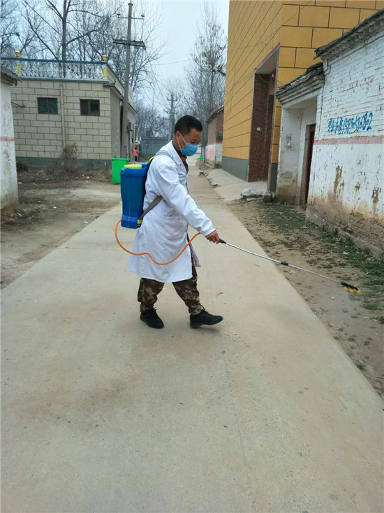 他不是為村民分發(fā)消毒液,就是對村主干道、公共衛(wèi)生間每天堅持消毒,雙腿累腫了,嘴唇起了泡,可他咬牙堅持。村委成員見他每天像個陀螺一樣高速的運轉著,讓他休息幾天,可楊建崗說啥也不同意。每天還是堅持著值班,發(fā)現(xiàn)問題及時糾正,對有些不理解的村民進行說服教育。除了值班,他還與其他志愿者一起做好流動崗,發(fā)現(xiàn)有扎堆的村民立即勸阻,發(fā)現(xiàn)有不戴口罩者一律勸回,對亂走親戚的村民堅決說“不”。