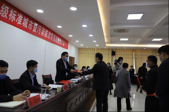 城關(guān)鎮(zhèn)、縣城管局、縣市場監(jiān)管局3家單位主要負責(zé)人和縣1家城市保潔公司,圍繞創(chuàng)建國家空氣質(zhì)量二級標(biāo)準(zhǔn)城市工作相繼作表態(tài)發(fā)言。各鄉(xiāng)鎮(zhèn)黨委書記分別向縣委書記王國璽遞交創(chuàng)建保證書。