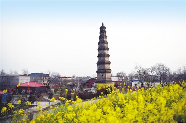 壽圣寺塔 位于商水縣郝崗鄉(xiāng)北常社店村,始建于北宋明道二年(1033年),明嘉靖二十八年進(jìn)行過(guò)大修。1998年9月,壽圣寺塔又進(jìn)行了一次大修。壽圣寺塔為九級(jí)樓閣式磚塔,高41.5米,平面呈正六邊形,塔內(nèi)砌有盤(pán)旋的塔道,可逐級(jí)登高遠(yuǎn)眺。塔體從底至頂漸收勻稱(chēng),成正六棱體錐形,塔頂形似寶葫蘆,給人以挺拔雋秀之感。塔的層檐收放尺寸自然得體,既保護(hù)了塔墻免遭雨雪侵蝕,又給予塔體以美的裝飾,看上去既規(guī)整肅穆,又不呆板。