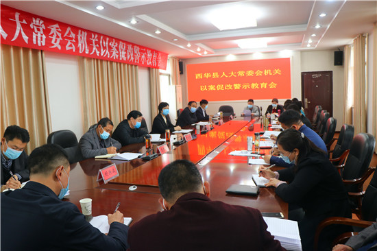 4月16日,西華縣人大常委會機關(guān)召開全體人員會議,開展以案促改警示教育,安排部署脫貧攻堅等工作??h人大常委會黨組書記、主任周曉燕,副主任趙曉春,黨組成員、副主任王心坎、龐有敬出席。黨組副書記、副主任張國玉主持。