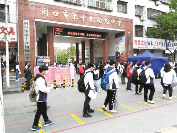 按照省市統(tǒng)一安排,周口市初三學(xué)生4月20日返校復(fù)學(xué)。與此同時(shí),周口市非高中畢業(yè)年級(jí)、中職2020年參加對口升學(xué)年級(jí)學(xué)生全面復(fù)學(xué)。為了這次重逢,學(xué)校和老師經(jīng)過多次設(shè)計(jì),反復(fù)演練,只是為了讓學(xué)生平平安安上下學(xué),給他們提供一個(gè)安全的學(xué)習(xí)環(huán)境。