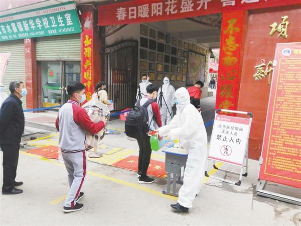 “復(fù)學(xué)后,周口四中實(shí)行小班教學(xué),每個(gè)班不超過35人,每個(gè)人前后左右間隔不低于1米,每個(gè)人進(jìn)入教室時(shí)需要測量體溫?!敝芸谒闹懈毙iL蘇飛告訴記者,班級(jí)一分為二,教師的工作量成倍增加,但是,學(xué)校在前期做了大量的教學(xué)準(zhǔn)備工作,合理安排初三年級(jí)的課程表,保證每個(gè)班、每節(jié)課都有老師進(jìn)行現(xiàn)場教學(xué)和現(xiàn)場輔導(dǎo)。