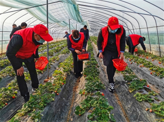 黨員志愿者到幫扶村向過(guò)往群眾宣傳普及新型冠狀肺炎防治知識(shí),發(fā)放新型冠狀病毒感染防控指南,并幫助村民采摘、銷(xiāo)售因疫情而滯銷(xiāo)的草莓,深受當(dāng)?shù)厝罕姺Q(chēng)贊。