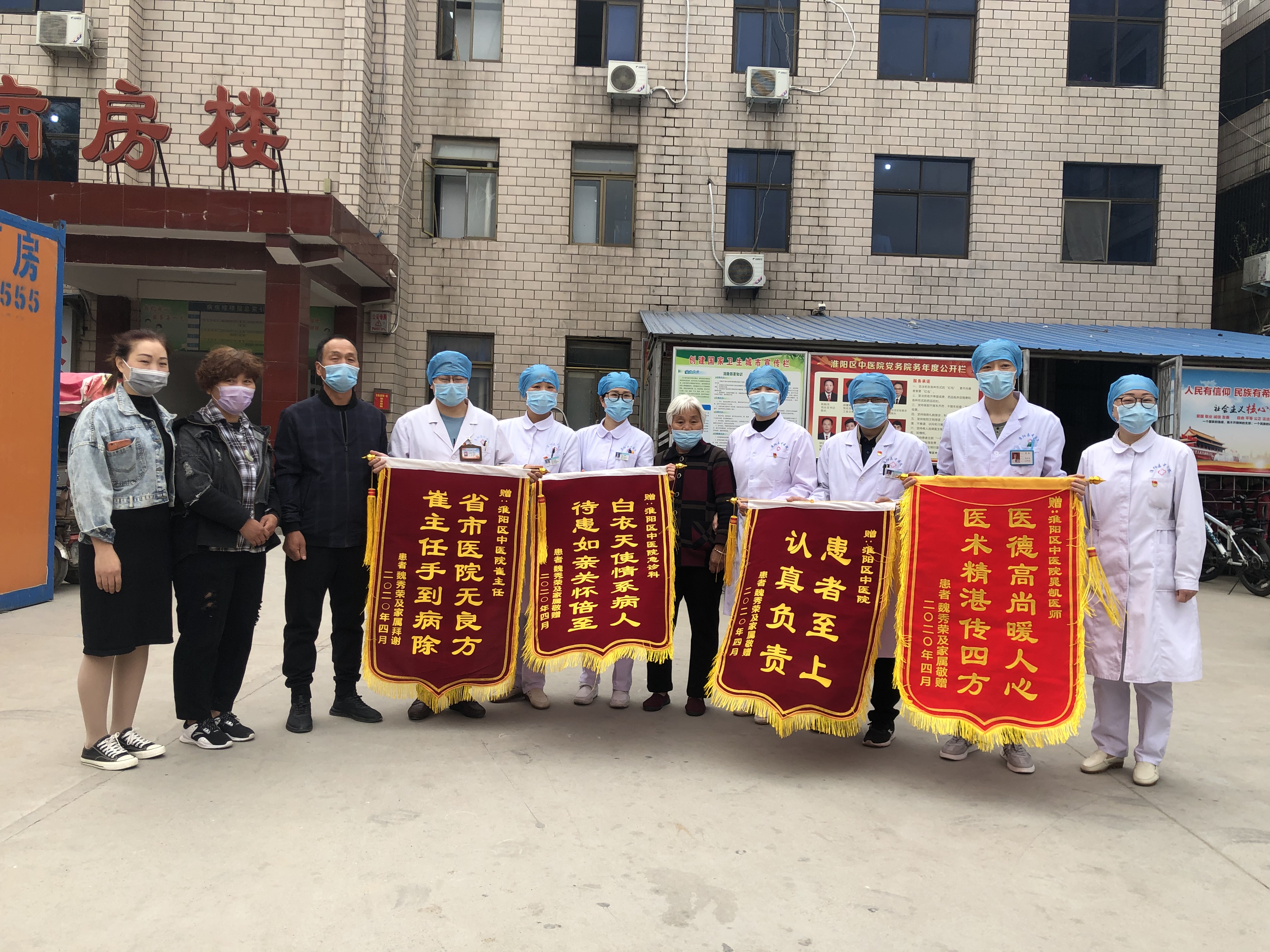 “真是太感謝你們了!技術(shù)和服務(wù)絕對(duì)雙一流!”4月27日上午,一名86歲老太太的家屬手捧四面錦旗來(lái)到淮陽(yáng)區(qū)中醫(yī)院,親自將錦旗送到副院長(zhǎng)劉永、外科主任崔成品、ICU醫(yī)師晁凱、護(hù)士長(zhǎng)劉婷婷、急診科護(hù)士長(zhǎng)李琴手中?;颊呒覍傥罩拗魅蔚氖盅酆瑹釡I久久不能松開(kāi),“真是沒(méi)想到能撿回我那老母親的一條命!多虧了崔主任,多虧了咱們醫(yī)院的全體醫(yī)護(hù)人員,在別的醫(yī)院都不給治療了,是你們中醫(yī)院幫我家老太太搶回一命?。 被颊呒覍俚男那榫镁貌荒芷綇?fù),感激之情難以言表。
