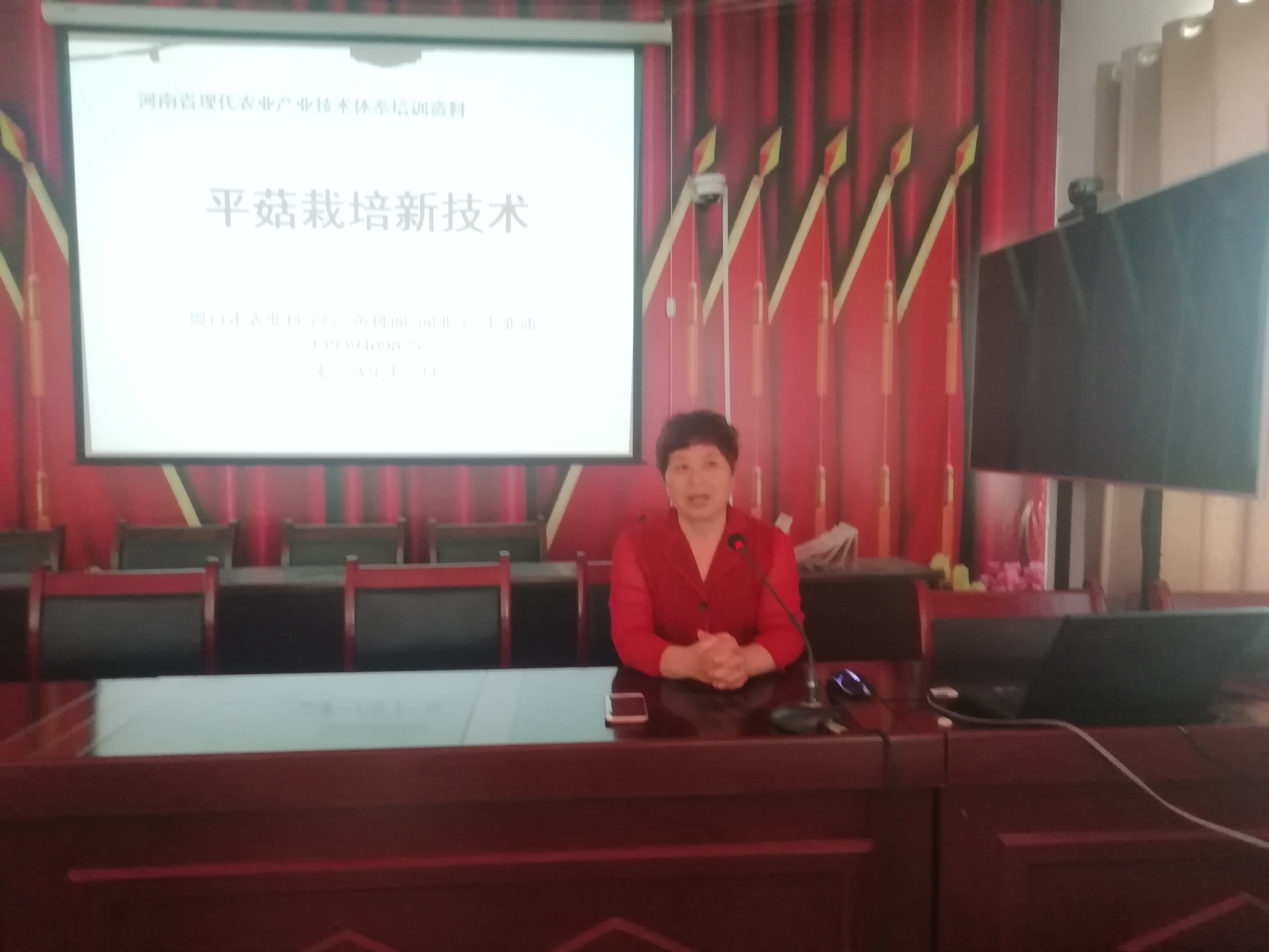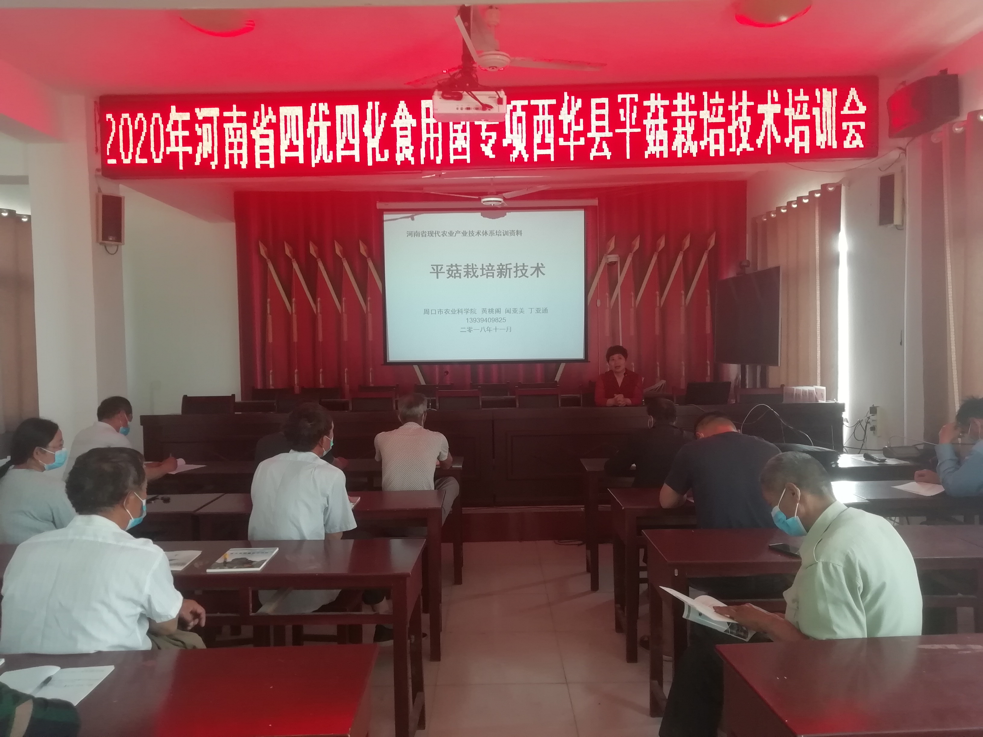 5月4日上午,2020年河南省四優(yōu)四化食用菌專項西華縣平菇栽培技術(shù)培訓(xùn)會在該縣大王莊鄉(xiāng)農(nóng)民培訓(xùn)中心舉辦?;顒友埵惺秤镁鷮<尹S桃閣進(jìn)行技術(shù)指導(dǎo)、專題講授。來自全縣農(nóng)科所部分農(nóng)業(yè)科研人員、部分鄉(xiāng)鎮(zhèn)食用菌種植專業(yè)合作社負(fù)責(zé)人等40余人參加培訓(xùn)。