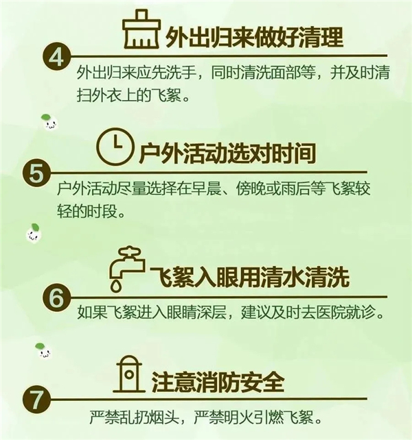 2.外出返回后應(yīng)先盡快洗手,及時清掃外衣上的飛絮。