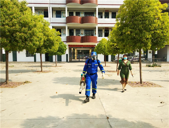 5月13日,我市中心城區(qū)低年級小學生將迎來返校復(fù)課。為保障孩子們身體健康,5月10日,周口市六一路小學再次邀請周口市藍天救援大隊工作人員對校園重點部位進行全面消毒殺菌,為低年級師生順利返校復(fù)課提供健康保障。(記者 黃佳 通訊員 劉芝 攝)