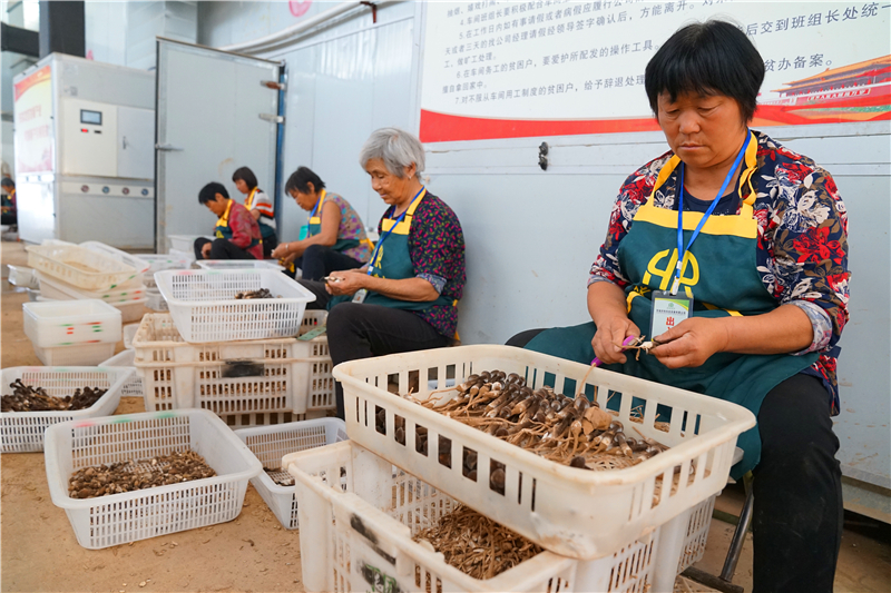 在大許寨鎮(zhèn)羅古洞村華瑞農(nóng)牧食用菌基地的包裝車間內(nèi),60多歲的村民王梅芝在和其他工人們一起包裝羊肚菌。她說,自己每月有1000多元的收入、“不用外出,在家門口掙錢,還能照顧孫子。”王梅芝說。