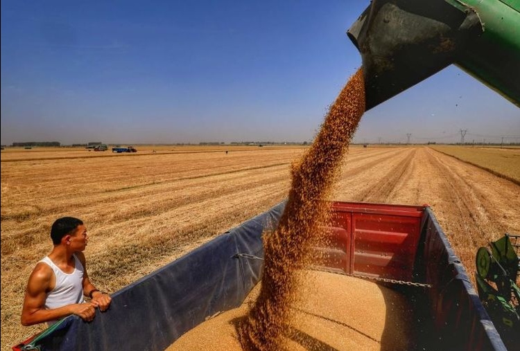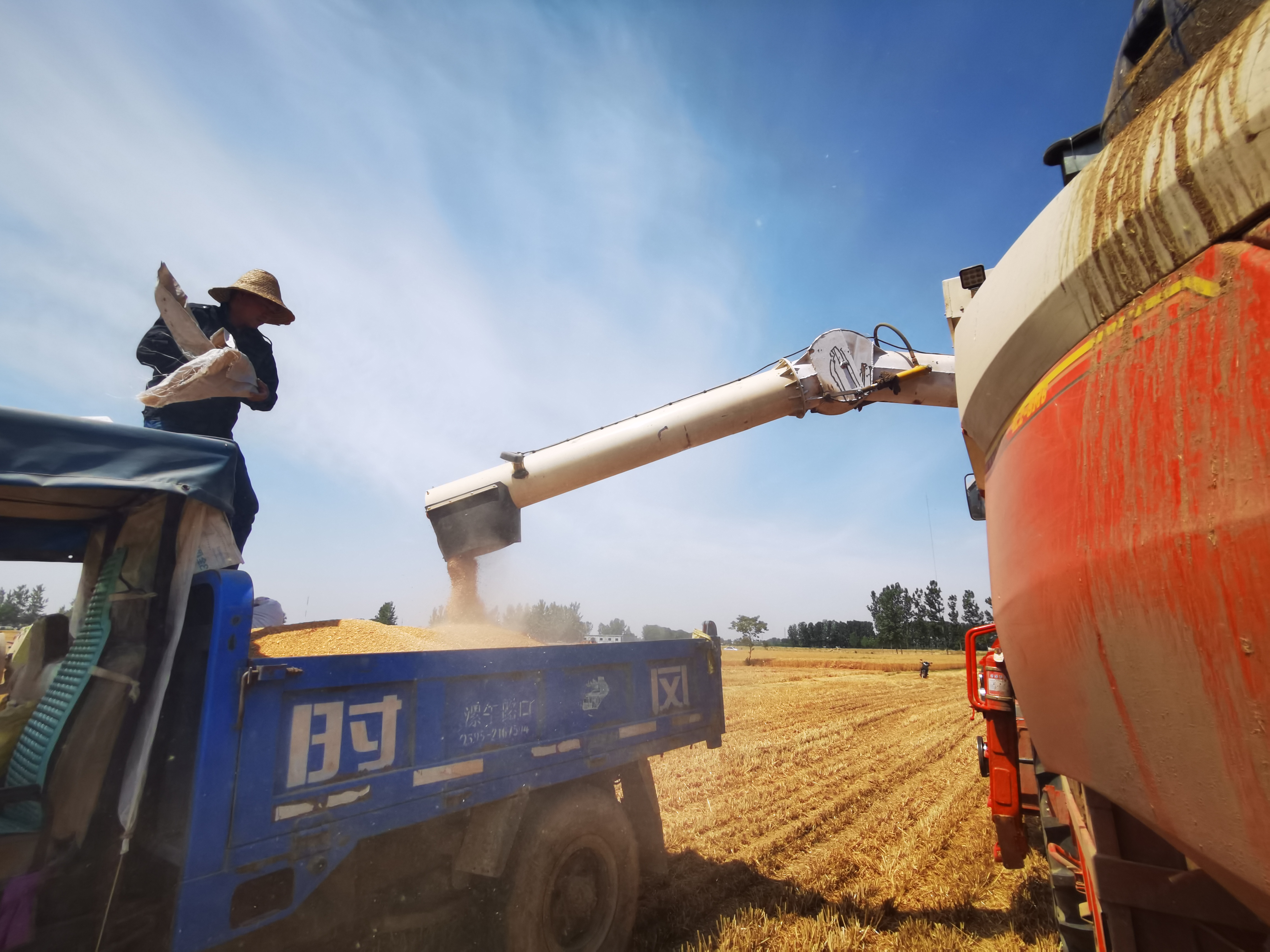 驕陽似火,麥香四溢。6月的西華鄉(xiāng)村大地到處一片繁忙景象。一臺(tái)臺(tái)收割機(jī)在金黃色的麥浪中轟鳴著馳騁,隨著小麥?zhǔn)崭顧C(jī)駛過,一顆顆金燦燦的麥穗被“吃”進(jìn)收割機(jī),然后,一粒粒飽滿的麥子從出倉口“吐”進(jìn)農(nóng)用車車斗里,農(nóng)民的臉上洋溢著豐收的喜悅。