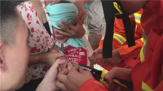 到達現(xiàn)場經(jīng)詢問得知,小男孩由于貪玩,將一個細(xì)長鋼管卡在了右手大拇指上,小男孩的家人嘗試了一些方法無果后,向消防救援大隊請求了幫助。由于時間稍長,小男孩的手指已經(jīng)浮腫,不停的哭泣,消防指戰(zhàn)員一邊尋求解決方法一邊安慰其情緒。經(jīng)觀察后,指戰(zhàn)員首先利用斷線鉗將鋼管剪斷,然后用擴張器小心翼翼的進行擴張,經(jīng)過2分鐘緊張救援,成功將鋼管取下。