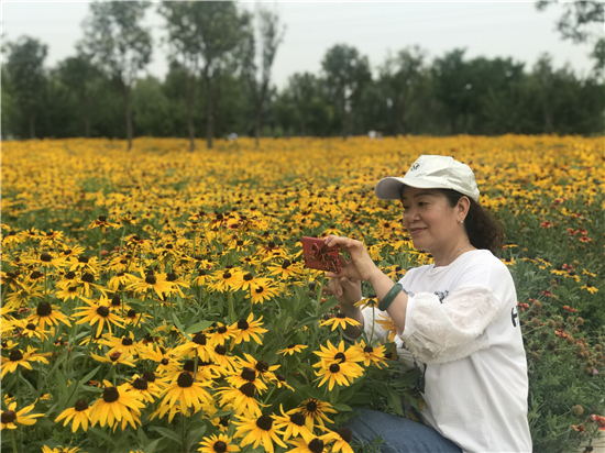 “不用移春檻,西風(fēng)滿客車。行行無長(zhǎng)物,粲粲只黃花?!苯瘴沂猩碀}河北岸的金光菊迎來了盛花期,吸引了市民們紛紛踏至。有的駐足靜尚、有的拍照留念、還有的拍個(gè)短視頻在朋友圈里曬一下,市民們?cè)诩议T口就能享受這滿眼金黃帶來的幸福。