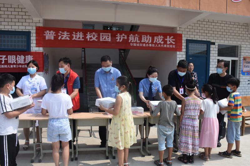 華耀城街道辦事處人大代表聯(lián)絡站為了鼓勵學生們好好學習,為每一名學生送去了學習用品。并以此次活動為契機,深入開展普法和愛眼護眼活動,著力營造濃厚的法制學習氛圍,為青少年的健康成長保駕護航。