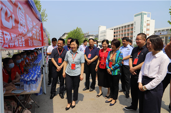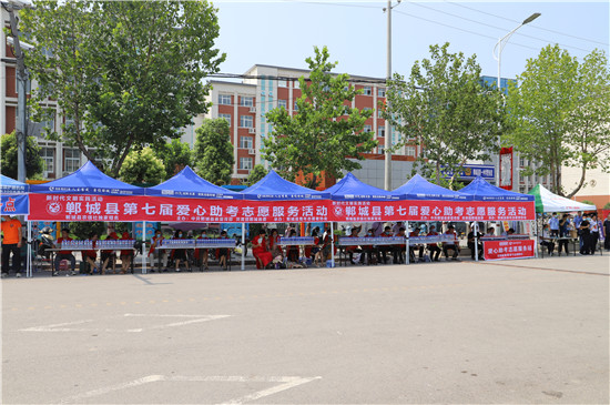 7月7日,全國高考進行時。鄲城縣為大力弘揚“奉獻(xiàn)、友愛、互助、進步”的志愿服務(wù)精神,由中共鄲城縣委宣傳部、共青團鄲城縣委聯(lián)合主辦,鄲城縣青年志愿者協(xié)會承辦,鄲城縣農(nóng)信社獨家贊助的愛心助考志愿服務(wù)活動在全縣6個考點順利開展,身著紅馬甲的志愿者們成為服務(wù)高考的亮麗風(fēng)景線。