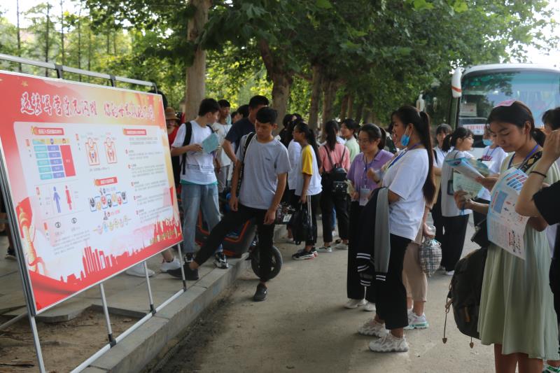 在該縣各標(biāo)準(zhǔn)化高考考點(diǎn)征兵宣傳現(xiàn)場(chǎng),人頭攢動(dòng)、熱鬧非凡?!昂媚袃?,來當(dāng)兵”大紅條幅和“把忠心獻(xiàn)給祖國,把青春獻(xiàn)給軍營”“參軍報(bào)國盡義務(wù),熱血青年競(jìng)風(fēng)采”的大型宣傳牌格外引人注目,內(nèi)容豐富的征兵宣傳展板一字排開,《征兵宣傳手冊(cè)》《大學(xué)新生應(yīng)征入伍宣傳單》《征兵政策宣傳解讀手冊(cè)》等征兵宣傳資料擺放在咨詢臺(tái)上一目了然,吸引了眾多的考生和家長駐足觀看,圍著咨詢臺(tái)詢問有關(guān)征兵事宜。