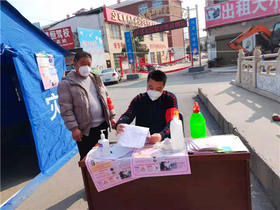 防疫物資緊缺是開展防疫工作面臨的共同難題。王七峰在防疫工作開始后,第一時(shí)間向城南辦事處捐助資金5萬元,并發(fā)動親屬積極捐款,其三哥王永紅捐助資金2萬元支持城南辦事處疫情防控工作,14歲的侄子王璽博也將自己的5000元壓歲錢捐了出來,為抗擊疫情助力。之后,王七峰除了統(tǒng)籌村里的防疫工作外,每天早上6點(diǎn),還會準(zhǔn)時(shí)到村里各個(gè)防控點(diǎn)或巡查或值守,始終堅(jiān)守在排查登記、區(qū)域防控第一線。有了王七峰的帶頭表率,該村的干部、黨員、志愿者紛紛加入抗疫隊(duì)伍中來,村民們也是有錢出錢、有力出力,大家眾志成城,有效落實(shí)了聯(lián)防聯(lián)控、群防群治的各項(xiàng)措施。