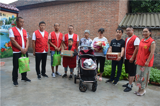 7月12日上午,周口市義工協(xié)會(huì)劉玉英帶領(lǐng)市縣義工志愿者一行10余人冒雨到商水縣平店鄉(xiāng)曾莊村看望慰問貧困家庭曾廣忍的新生病兒,送去了奶粉、嬰兒車、衣物等生活用品,送去了社會(huì)慈善機(jī)構(gòu)和愛心人士的一片關(guān)愛之情。