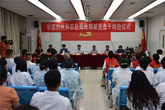 “作為一名醫(yī)務人員,能為患者帶來生的希望,無論如何我都不會拒絕。希望捐獻后那位患者能早日康復,投入新生活……” 7月22日上午,在西華縣中醫(yī)院會議室舉行的劉歡同志赴鄭州捐獻造血干細胞歡送儀式上,這位來自該院骨科護士長的一番話贏得現(xiàn)場陣陣掌聲。市紅十字會常務副會長毛立營,市紅十字會秘書長高春,西華縣委副書記郭峰,西華縣人民政府副縣長、紅十字會會長張翠霞,西華縣衛(wèi)健委副主任胡濤,西華縣中醫(yī)院院長高彥博等出席歡送儀式。