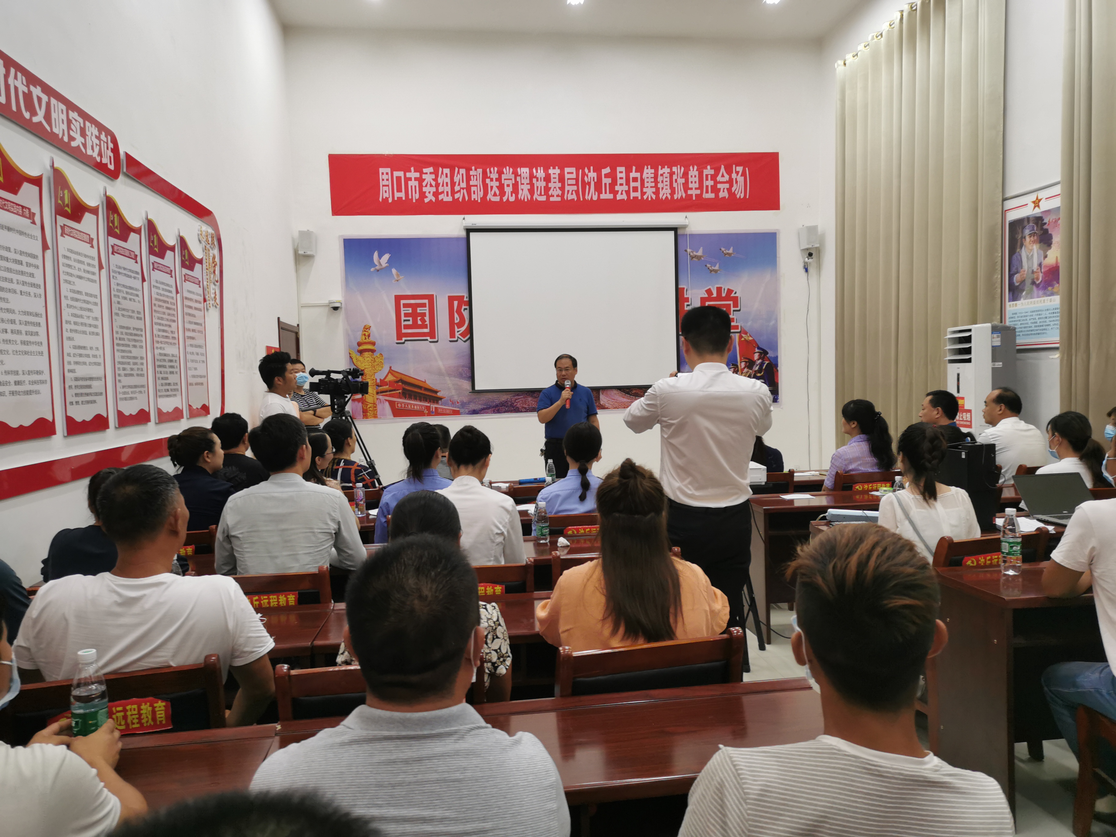 “是黨員就要勇于擔當,是黨員疫情面前就要敢于挺身而出……”8月4日下午,沈丘縣白集鎮(zhèn)張單莊村委會會議上座無虛席, 來自白集鎮(zhèn)政府、張單莊村的120多名黨員干部共同分享著一道“精神大餐”,由周口市委組織部組織的“送黨課下基層”活動正在上演。